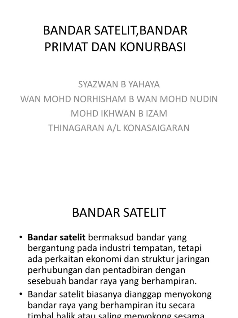 Bandar Satelit Bandar Primat Dan Konurbasi