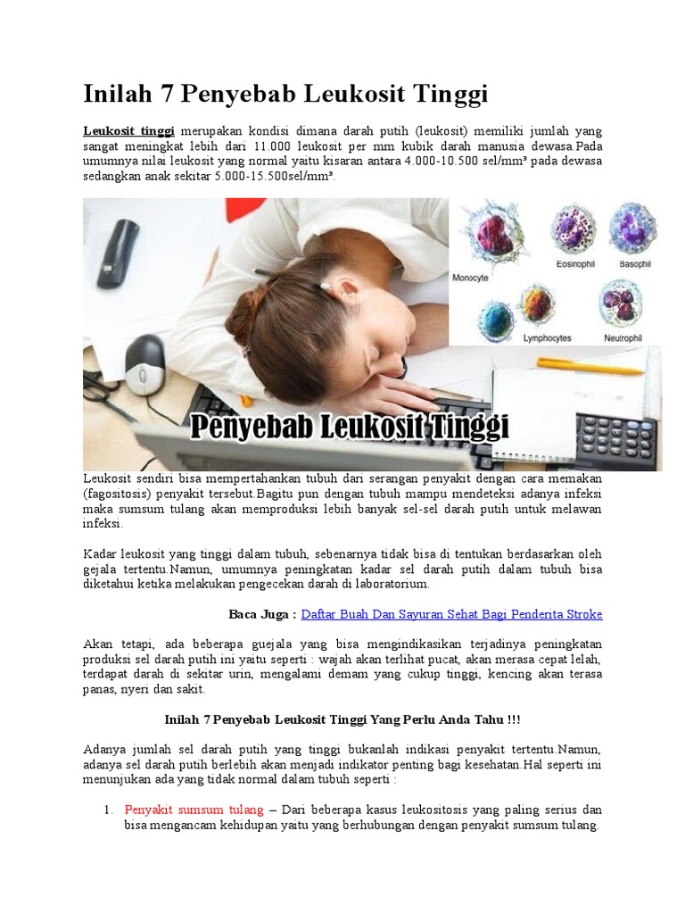 7 Penyebab Leukosit Tinggi Leukositosis Honestdocs