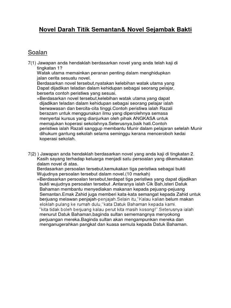 Soalan Dan Jawapan Novel Darah Titik Di Semantan Selangor B