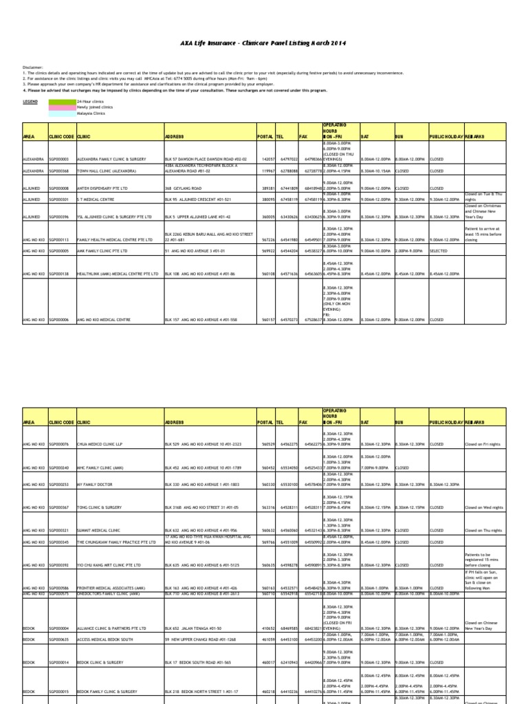 Axa Panel Clinic Listing Clinicare Mar14 Medical And Health Organizations Primary Care