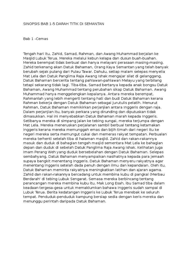 Sinopsis Novel Darah Titik Di Semantan Mengikut Bab