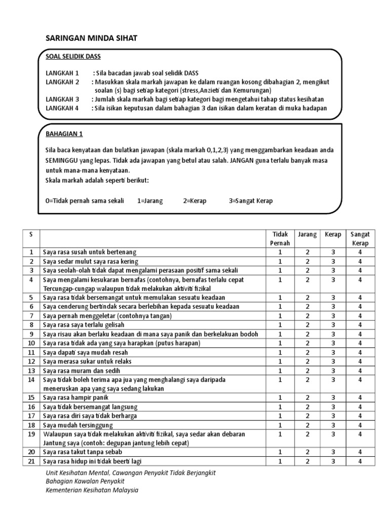 Mymellythoughts Ujian Saringan Dass Malaysia